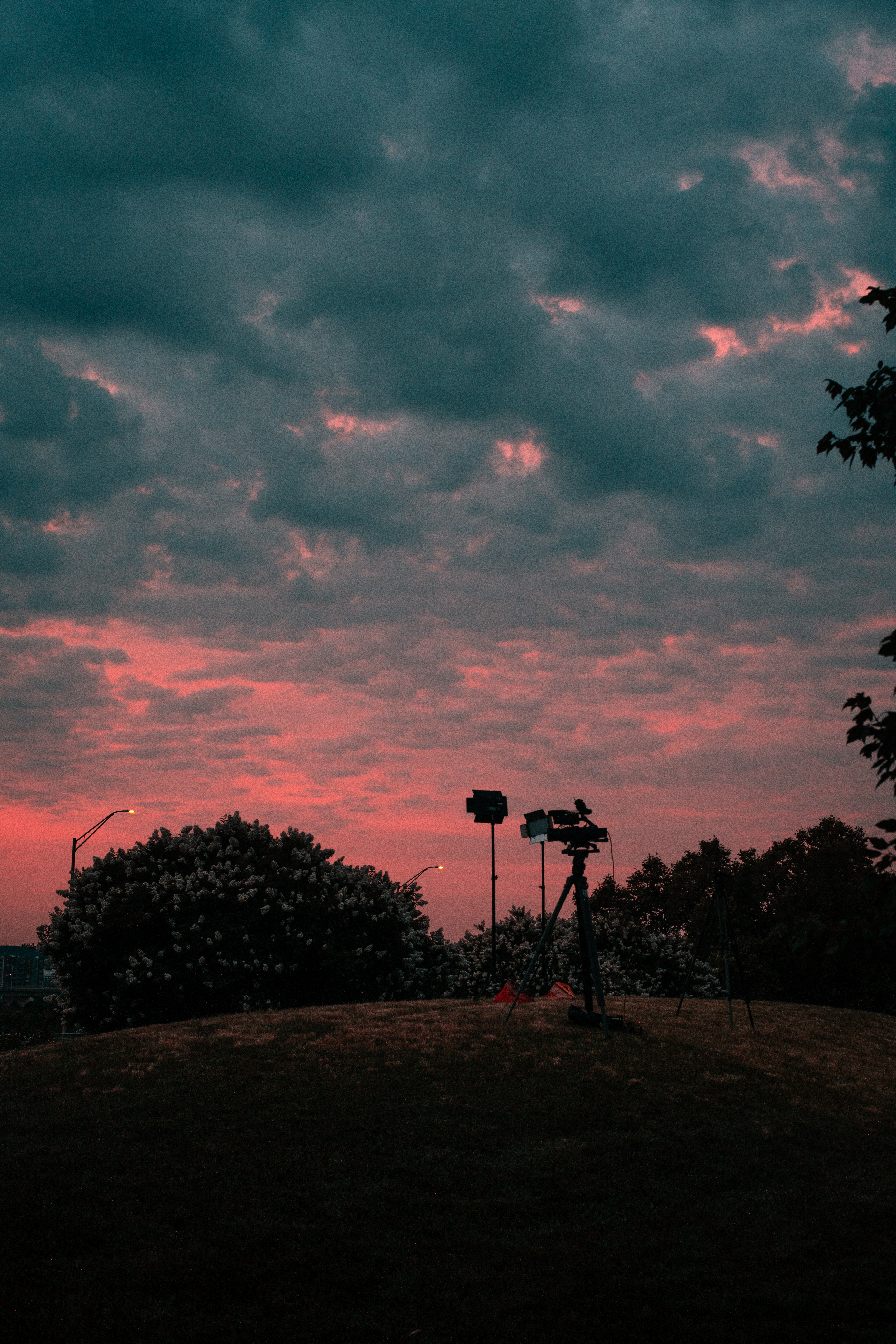 Since then, I’ve been applying some form of color correction to most of the pictures I’ve taken. It’s been mostly my new teal/orange preset, but I’ve been trying to expand. For example, this image of our live shot setup at sunrise, I loved the pink in the clouds and tried to really single that out by muting the green and yellow of the grassy hill.